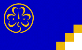 世界旗於一九三零年採用,旗幟是彩藍色的,上面放了一個金色的三葉章,代表蔚藍天空中的太陽,照耀全世界。三葉章代表誓詞的三部份,及其上面的兩顆星星,代表著我們的誓詞規律。中間針尖圖案如指南針般,指示我們要遵循的正確路線,葉底下那波紋的一片,就是古代寫「人類愛的火焰」的圖案。
